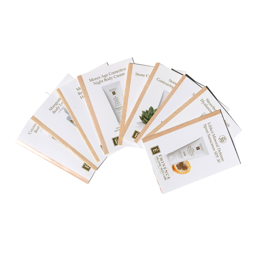 The perfect Eminence Organics introductory gift set! Includes our top ten best selling cleanser, exfoliant, serum, moisturizer, and eye serum!