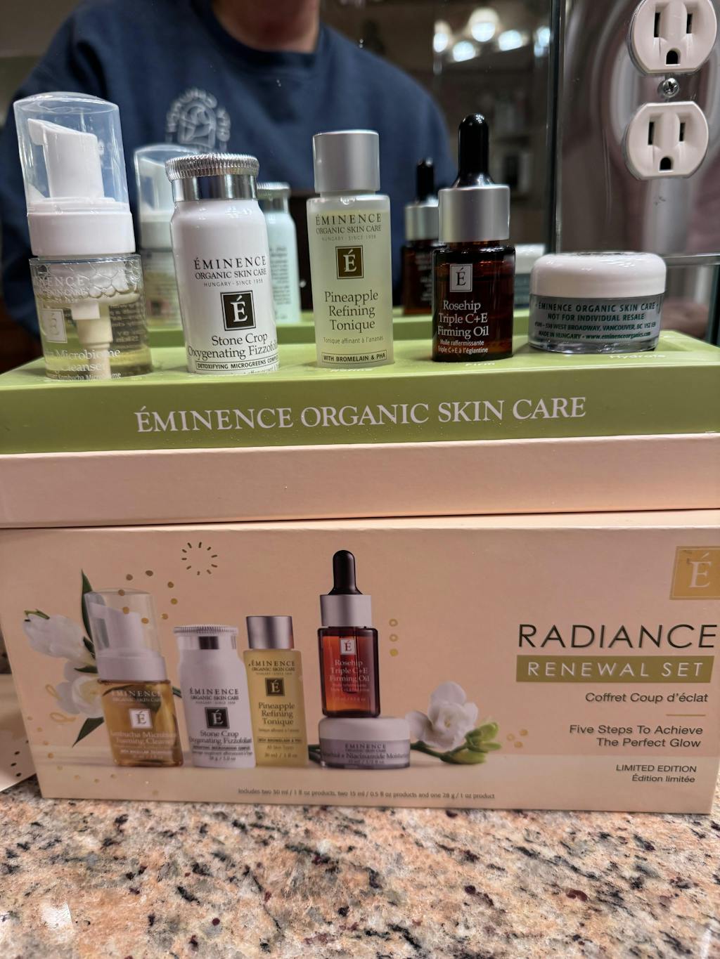 I am only on day THREE of using this Eminence Organic Skin Care Radiance Renewal Set, and I am honestly blown away. My skin has never felt this soft, hydrated, and smooth — and the glow is real.